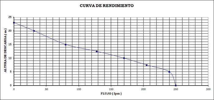 Flujo L/min | Descarga (m) | Presión ( Kg/cm2 ) | Succión (m) | Amperaje |